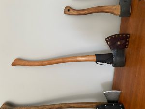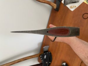 This is a Yankee pattern probably made some time before 1988 and after 1960s. It looks like it might have the original permabond in the eye. If so probably made in the 1960-70s. Love the leather guard and sheath!
